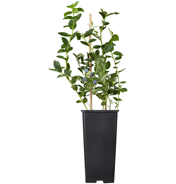 Die Heidelbeere 'Bluegold' (Vaccinium corymbosum) bildet blaue Beeren. Diese sind süß-säuerlich im Geschmack. Für eine ertragreiche Ernte ab Mitte Juli schaffen humoser, sandiger, schwachsaurer Boden und ein sonniger bis halbschattiger Standort optimale Bedingungen. Ihre hellrosafarbenen Blüten sind eine schöne Erscheinung. Die Heidelbeere 'Bluegold' wird mit ihrem buschigen und aufrechten Wuchs etwa 1,5 m hoch und 80 cm breit, dadurch kann sie hervorragend in Töpfen auf Balkon oder Terrasse angebaut werden.