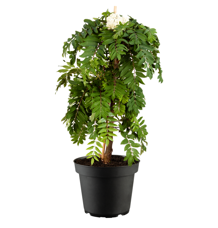 Pyramiden-Eberesche 'Fastigiata' ist ein säulenförmig wachsender Kleinbaum mit lockerer Krone. Sie erreicht gewöhnlich eine Höhe von 5 - 8 m und wird ca. 1 - 1,5 m breit. Langsam wachsend. In der Regel wächst sie 15 - 25 cm pro Jahr.
