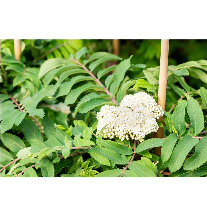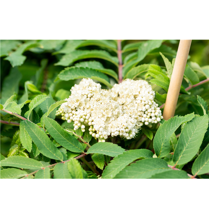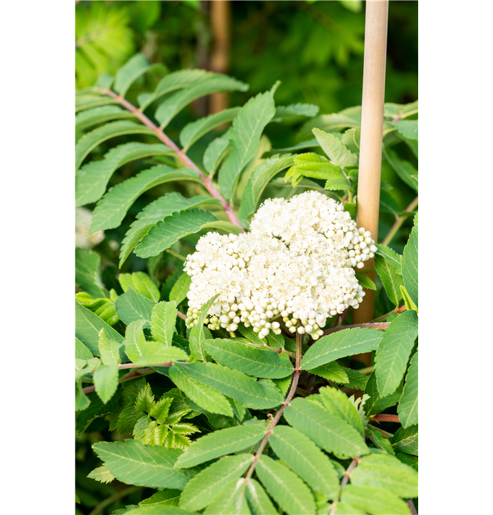 Die weißen Blüten der Pyramiden-Eberesche 'Fastigiata' erscheinen in Rispen von Mai bis Juni.