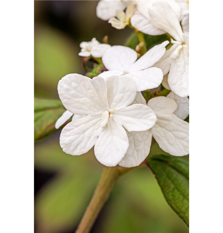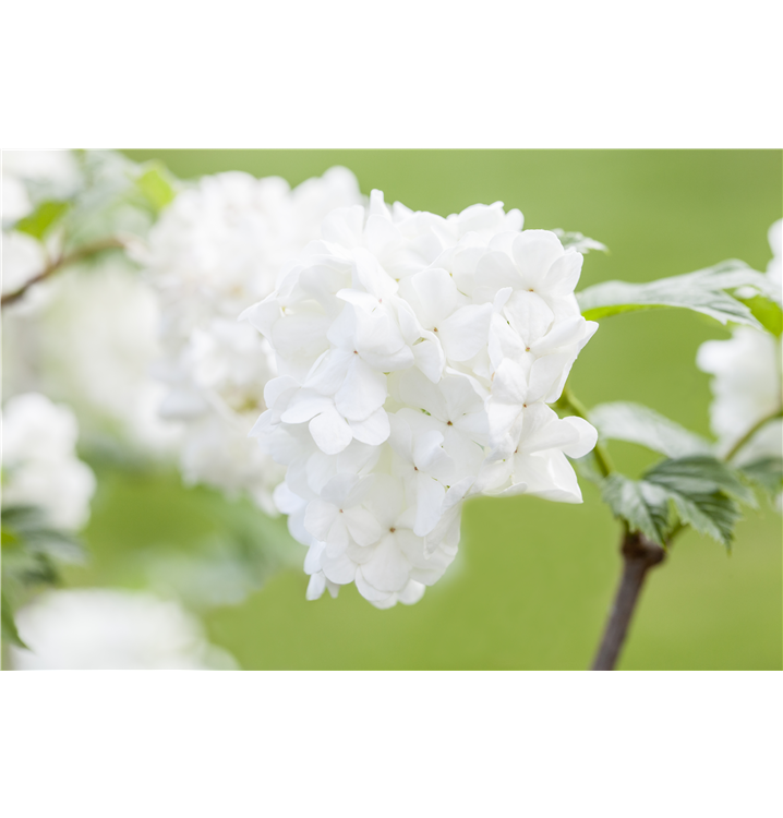 Die weißen, gefüllten Blüten des Japanischen Schneeball 'Summer Snowflake' erscheinen in Trugdolden von Mai bis Juni. Diese sind stark duftend.