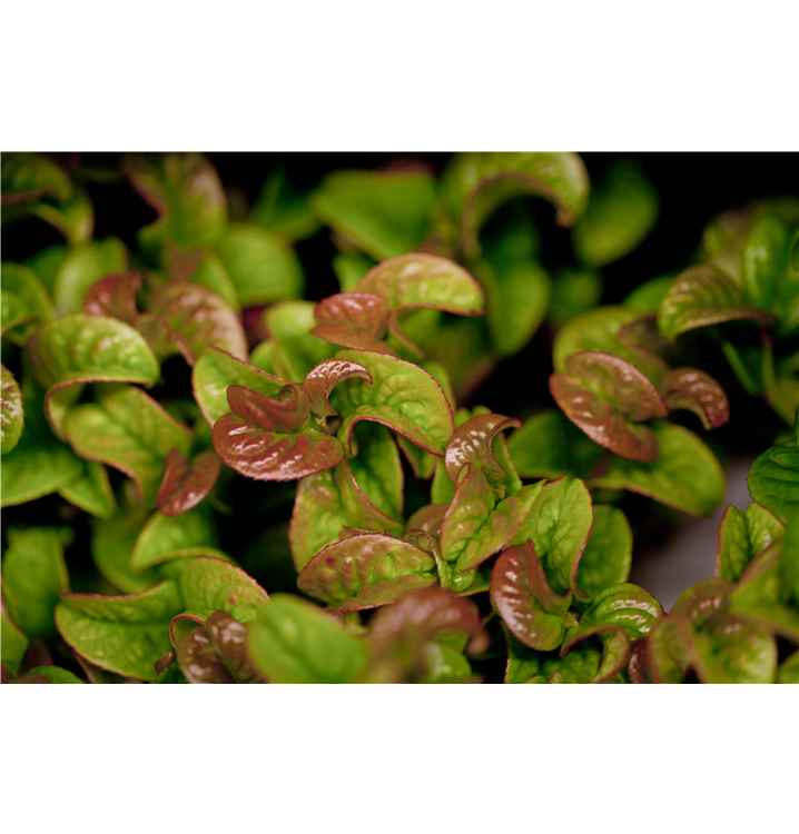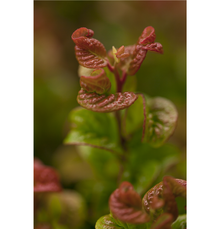 Die immergrünen Blätter der Traubenheide 'Curly Red'® sind dunkelgrün, lanzettlich, glänzend, wechselständig, gezähnt. Roter Austrieb. Mit seinem purpurroten Laub setzt sie schöne Akzente im Winter.