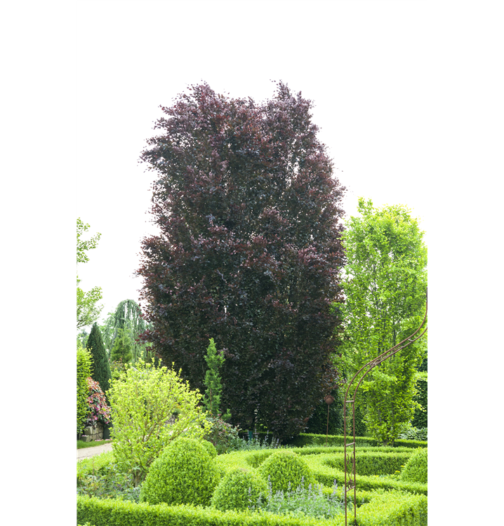 Blutbuche ist ein aufrecht und breit wachsender Großbaum. Sie erreicht gewöhnlich eine Höhe von 25 - 30 m und wird ca. 20 - 30 m breit. In der Regel wächst sie 40 - 45 cm pro Jahr.
