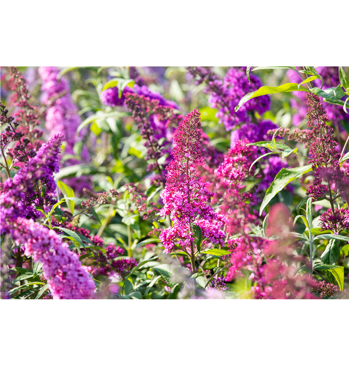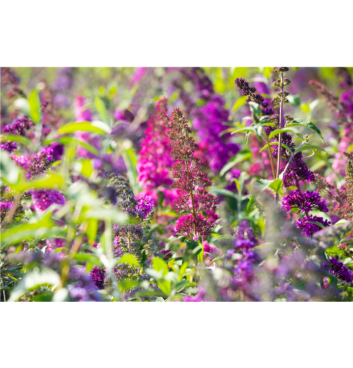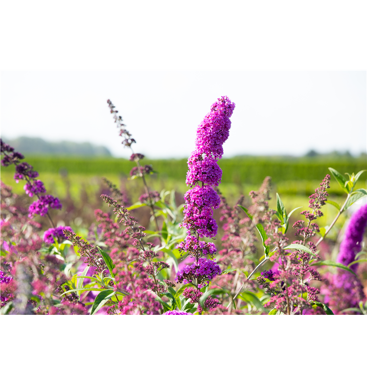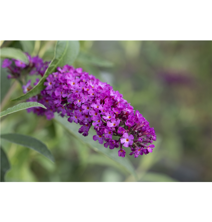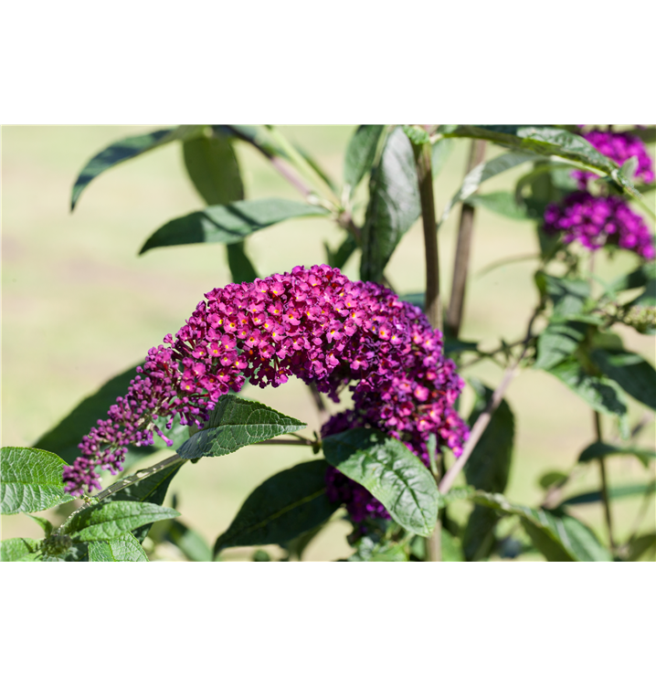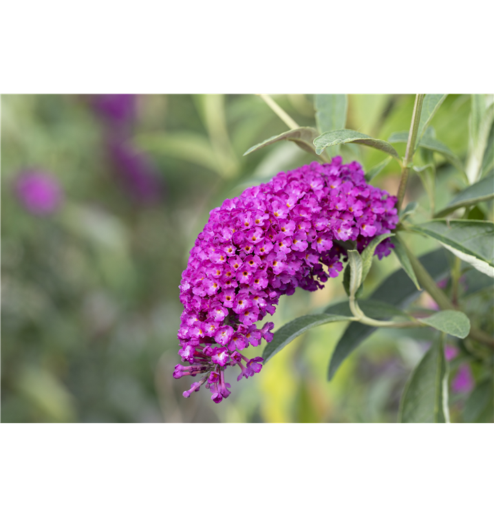 Die purpurroten Blüten des Sommerflieder 'Royal Red' erscheinen in Rispen von Juli bis Oktober. Diese werden etwa 30 - 50 cm groß und sind stark duftend.