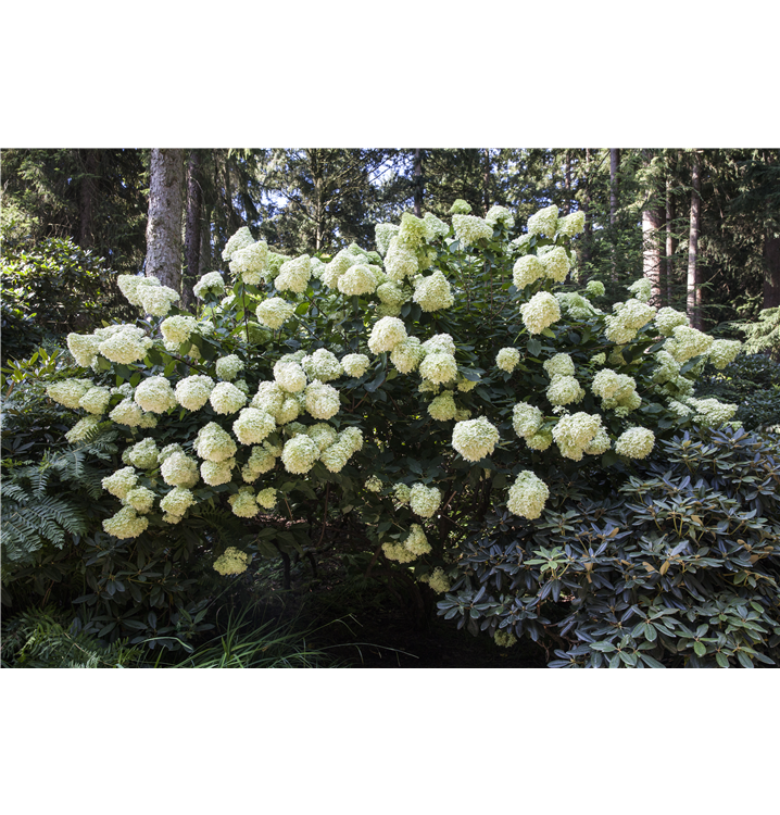 Rispenhortensie 'Phantom' ist ein aufrecht wachsender Strauch. Sie erreicht gewöhnlich eine Höhe von 2 - 2,5 m und wird ca. 2 - 2,5 m breit.