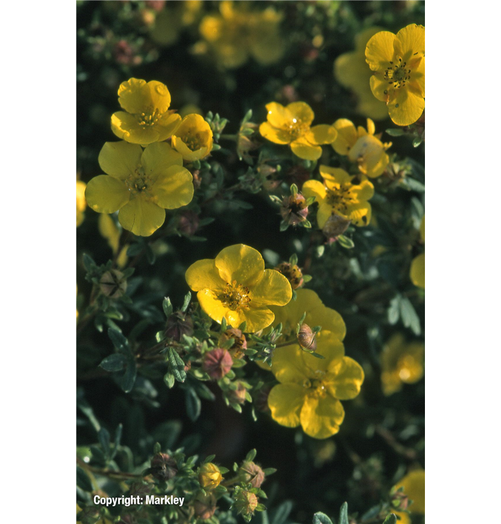 Fingerstrauch 'Sommerflor' ist ein buschig und breit wachsender Kleinstrauch. Er erreicht gewöhnlich eine Höhe von 0,8 - 1 m und wird ca. 0,8 - 1 m breit. In der Regel wächst er 10 - 25 cm pro Jahr.