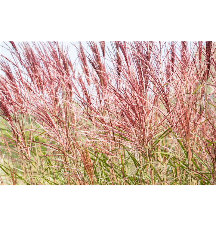 Die roten Blüten des Garten-Chinaschilf 'Red Chief' erscheinen in Rispen von August bis Oktober.