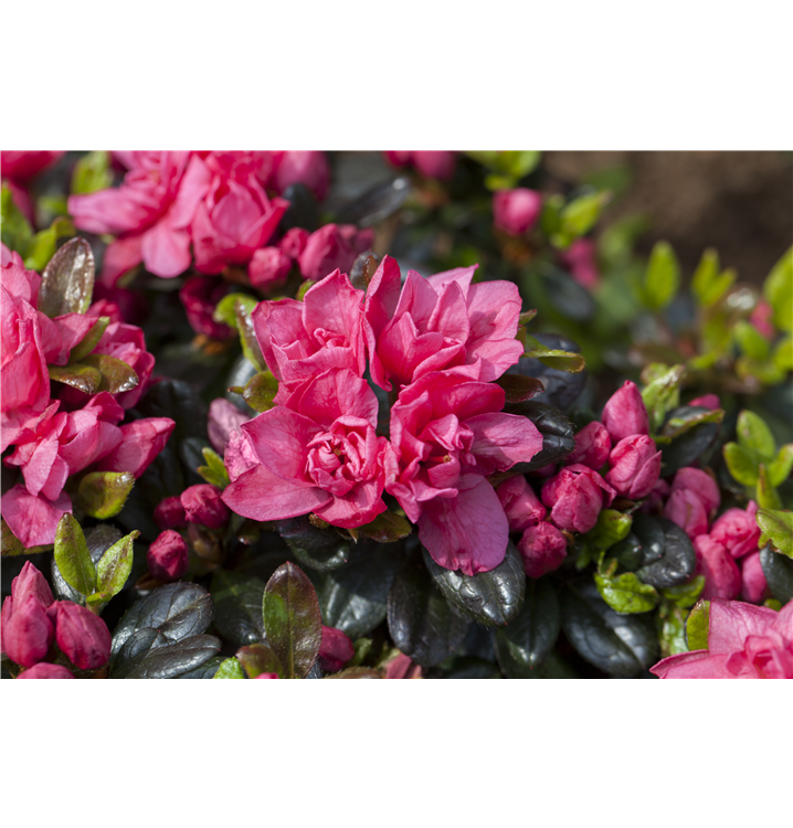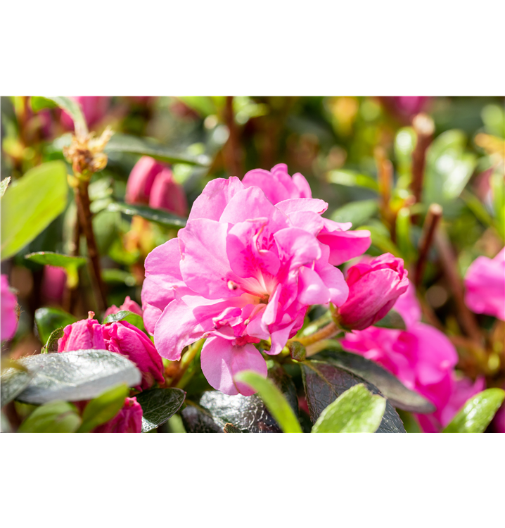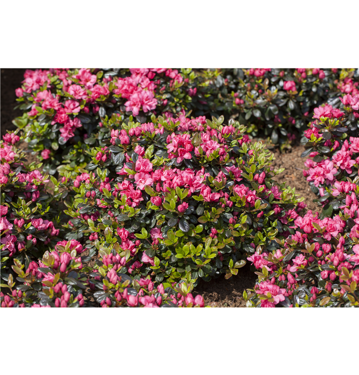 Die Japanische Azalee 'Rosinetta'® (Rhododendron obtusum) bringt von Ende Mai bis Mitte Juni ein wahres Meer aus rosafarbenen Blüten hervor. Ihr wintergrünes Laub ist dunkelgrün. Dieses kompakt, rundlich wachsende Gehölz erreicht gewöhnlich eine Höhe von 50 - 60 cm und eine Breite von 70 bis 80 cm. Ein halbschattiger (bis schattiger) Standort und ein durchlässiger, nährstoffreicher, saurer Boden schaffen optimale Bedingungen für ein gesundes Wachstum. Die Japanische Azalee 'Rosinetta'® ist gut frostverträglich.