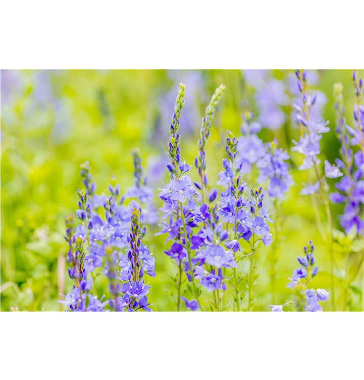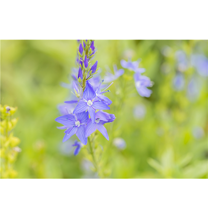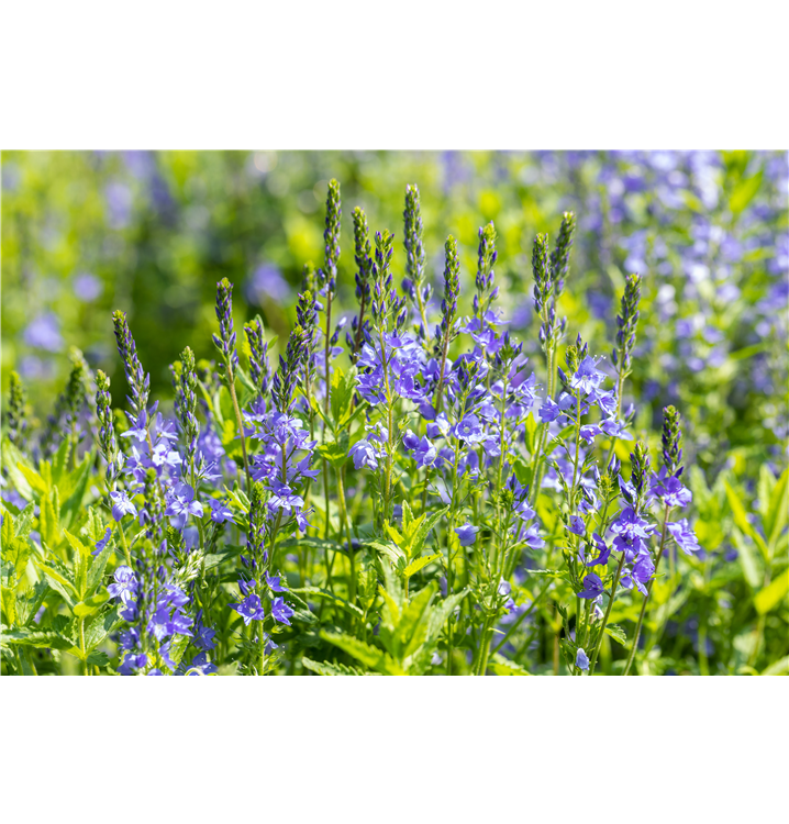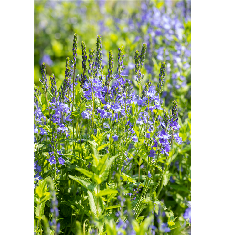 Veronica austriaca 'Royal Blue' bildet dunkelblaue Blüten ab Mai.