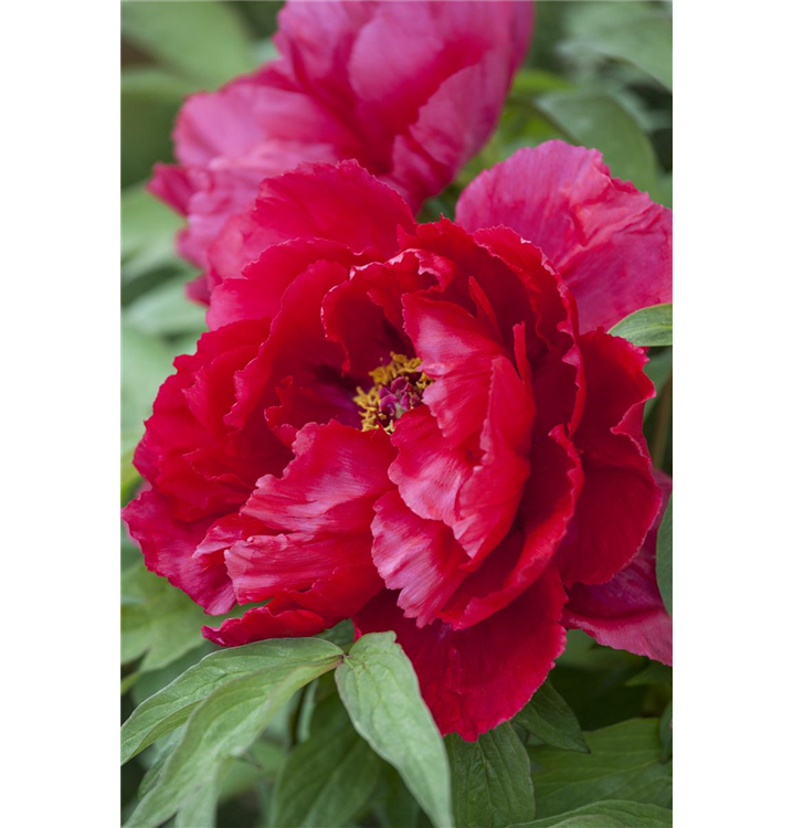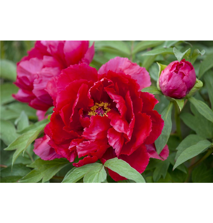 Die sommergrünen Blätter der Asiatische Pfingstrose sind dunkelgrün, gefingert.
