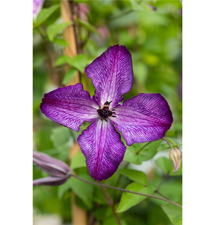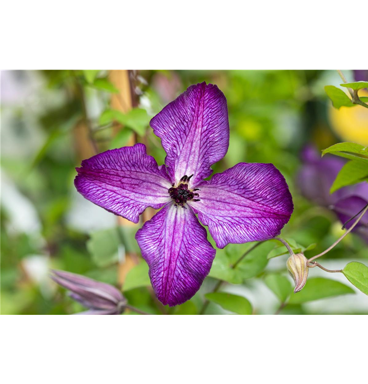 Waldrebe 'Super Nova' ist ein rankend wachsendes Klettergehölz, welches eine Höhe von 2,5 - 3 m und eine Breite von 2,5 - 3,5 m erreichen kann.