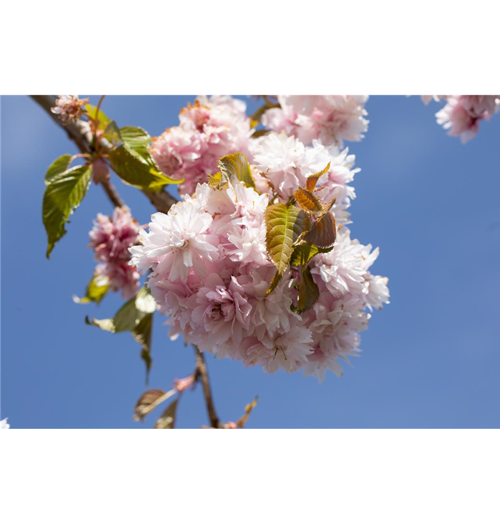 Hängende Nelkenkirsche 'Kiku-shidare-zakura' ist ein überhängend wachsender Kleinbaum. Sie erreicht gewöhnlich eine Höhe von 4 - 6 m und wird ca. 3 - 4 m breit. In der Regel wächst sie 20 - 30 cm pro Jahr.