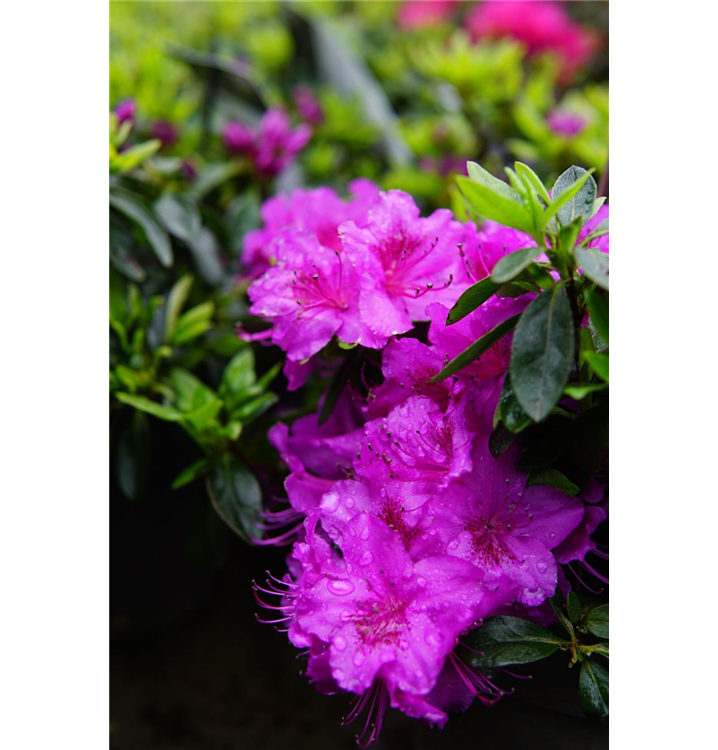 Die Japanische Azalee 'Königstein' (Rhododendron obtusum) bringt von Mitte Mai bis Ende Mai ein wahres Meer aus violetten Blüten hervor. Dieses breit, kompakt wachsende Gehölz erreicht gewöhnlich eine Höhe von 40 - 60 cm und eine Breite von 60 bis 80 cm. Ein halbschattiger (bis schattiger) Standort und ein durchlässiger, nährstoffreicher, saurer Boden schaffen optimale Bedingungen für ein gesundes Wachstum. Die Japanische Azalee 'Königstein' ist gut frostverträglich.