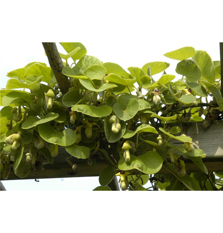 Großblättrige Pfeifenwinde ist ein dicht wachsendes Klettergehölz, welches eine Höhe von 8 - 10 m und eine Breite von 2 - 6 m erreichen kann. In der Regel wächst sie 1 - 1,5 m pro Jahr.