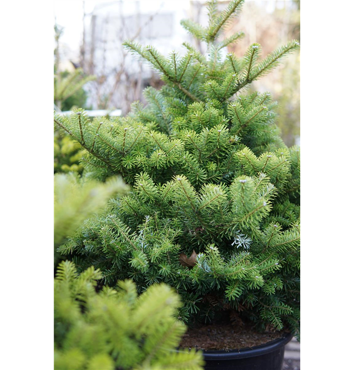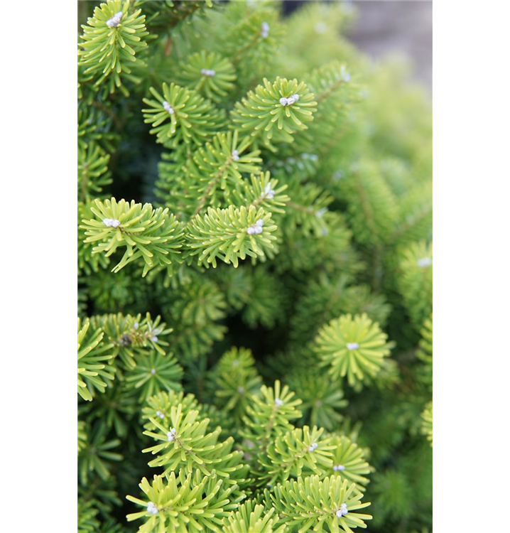 Kompakte Koreatanne 'Molli' ist kegelförmig und kompakt im Aufbau. Langsam wachsend.