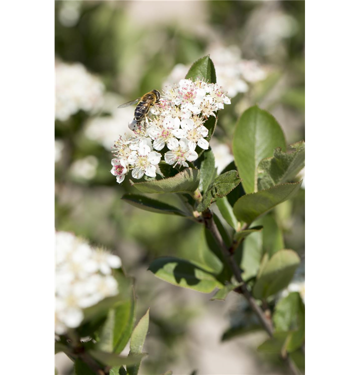 Aronia x prunifolia 'Nero' bildet weiße Blüten ab Mai.