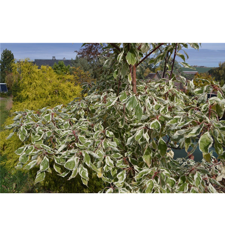 Der Hohe weißbunte Etagen-Hartriegel 'Variegata' weist eine gute Frosthärte auf.