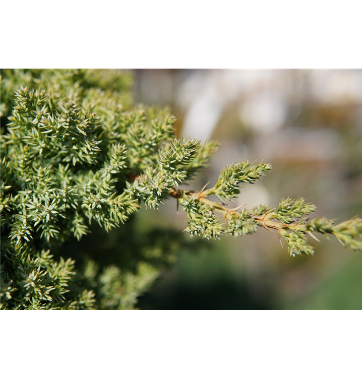 Niederer Zwergwacholder 'Nana' ist ein flach, kriechend und zwergwüchsig wachsender Zwergstrauch. Er erreicht gewöhnlich eine Höhe von 15 - 20 cm und wird ca. 1 - 1,5 m breit.