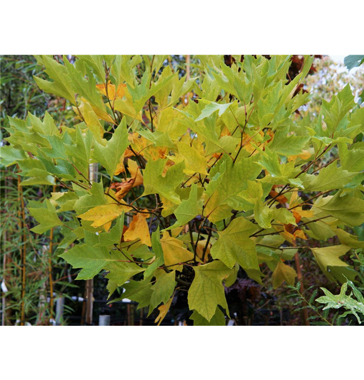 Diese Pflanze könnte in ihren Ansprüchen bzw. Aussehen der Ahornblättrigen Platane 'Alphens Globe' ähnlich sein: Acer platanoides (Spitzahorn).