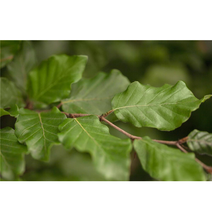 Die sommergrünen Blätter der Rotbuche sind mittelgrün, eiförmig, wechselständig, gewellt. Diese sind etwa 5 - 10 cm groß. Rotbuche zeigt sich leuchtend goldgelb im Herbst.