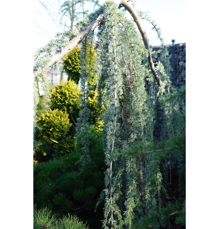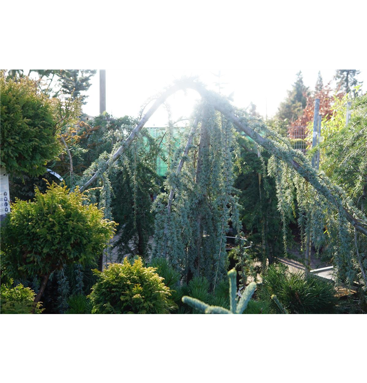 Hängende Blauzeder 'Glauca Pendula' ist ein ausladend, bizarr und überhängend wachsender Großbaum oder Kleinbaum. Sie erreicht gewöhnlich eine Höhe von 4 - 6 m und wird ca. 2 - 4 m breit. Rasch wachsend. In der Regel wächst sie 20 - 30 cm pro Jahr.