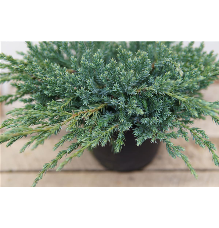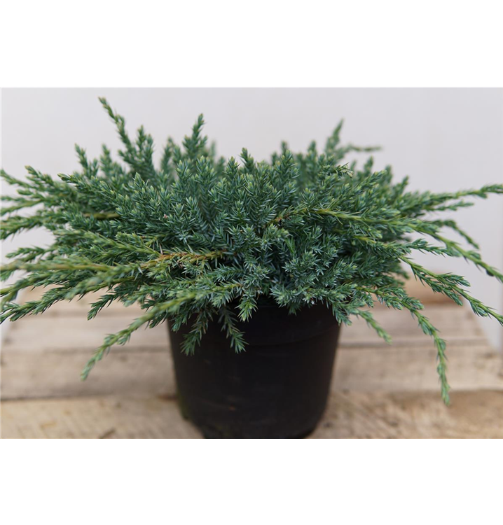Der Bodenwacholder 'Blue Carpet' (Juniperus squamata) ist ein Zwergstrauch, welcher kriechend wächst und gewöhnlich eine Höhe von ca. 50 cm und eine Breite von ca. 3 m erreicht. Seine nadelförmigen Blätter haben eine blau-graue Färbung. Dekorative blaue Zapfen zieren Juniperus squamata 'Blue Carpet' ab August. Dieses Gehölz ist gut frostverträglich. Er bevorzugt durchlässigen, nährstoffreichen Boden in sonniger bis halbschattiger windgeschützter Lage.
