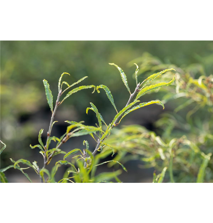 Die sommergrünen Blätter der Rotbuche 'Mercedes' sind hellgrün, lanzettlich, zerschlitzt. Diese sind etwa 5 - 10 cm groß. Rotbuche 'Mercedes' zeigt sich leuchtend gelb im Herbst.