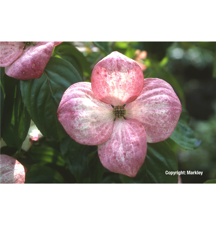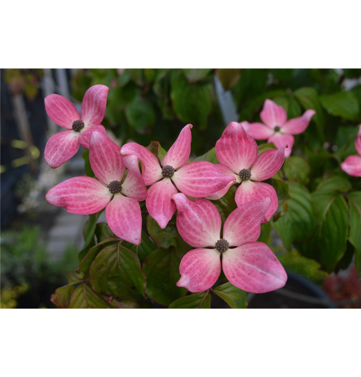 Japanischer Blumen-Hartriegel 'Satomi'® ist ein aufrecht wachsender Großstrauch. Er erreicht gewöhnlich eine Höhe von 4 - 6 m und wird ca. 4 - 5 m breit. Langsam wachsend.