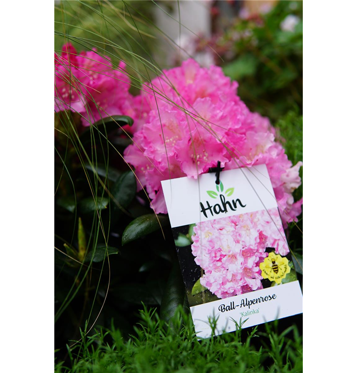 Yaku-Rhododendron 'Kalinka' ist ein kompakt und rundlich wachsender Kleinstrauch. Er erreicht gewöhnlich eine Höhe von 1,2 - 1,4 m und wird ca. 1,4 - 1,8 m breit. Langsam wachsend. In der Regel wächst er 20 - 30 cm pro Jahr.