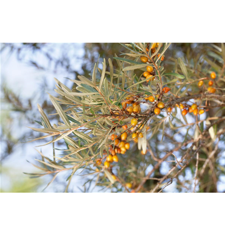 Der Sanddorn, weiblich 'Leikora' weist eine gute Frosthärte auf.