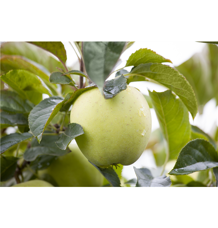 Der Apfel 'Klarapfel' (Malus domestica) bildet hellgrüne, weiche Früchte. Sie haben einen säuerlichen Geschmack. Für eine ertragreiche Ernte ab Mitte Juli schaffen durchlässiger, nährstoffreicher Boden und ein sonniger bis halbschattiger Standort optimale Bedingungen. Auch seine hellrosafarbenen Blüten sind eine schöne Erscheinung. Der Apfel 'Klarapfel' wird mit seinem aufrechten und breiten Wuchs etwa 4 m hoch und 3 m breit.