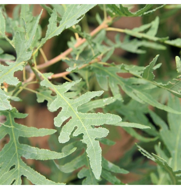 Hoher Blattschmuckwert. Die sommergrünen Blätter der Stieleiche 'Pectinata' sind dunkelgrün, eiförmig, geschnitten, ledrig, wechselständig, gelappt. Diese sind etwa 10 - 15 cm groß. Stieleiche 'Pectinata' zeigt sich leuchtend orangegelb im Herbst.
