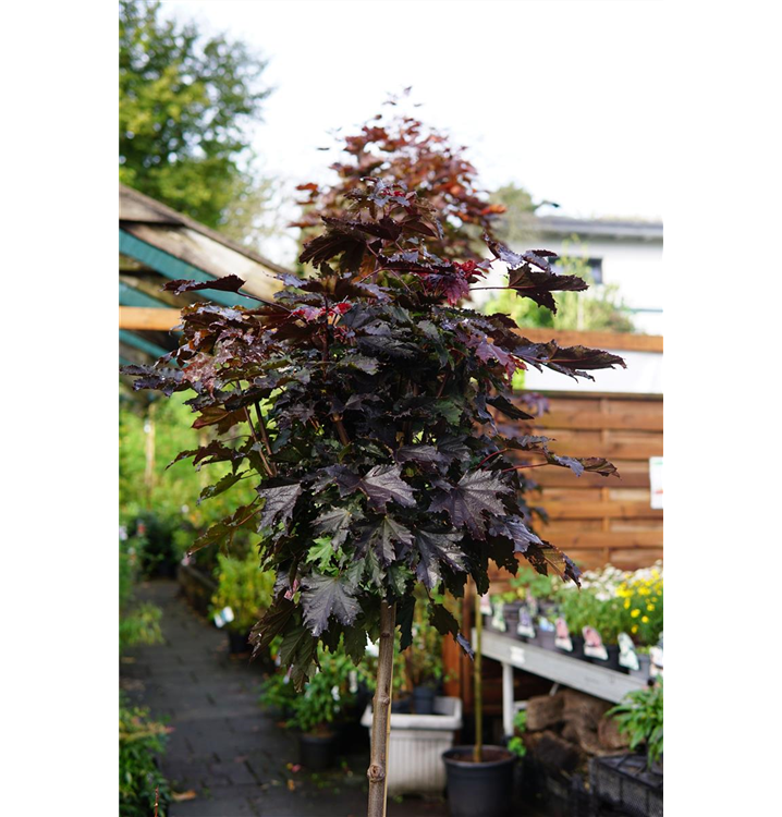 Spitzahorn 'Crimson Sentry' ist ein dicht und schlank wachsender Großbaum oder Kleinbaum. Er erreicht gewöhnlich eine Höhe von 6 - 10 m und wird ca. 1,5 - 2,5 m breit. In der Regel wächst er 30 - 80 cm pro Jahr.