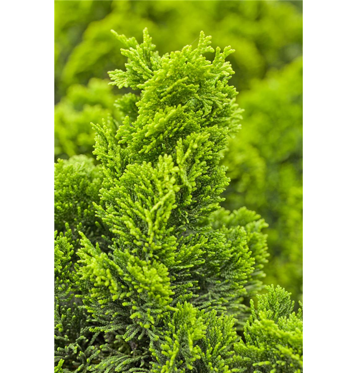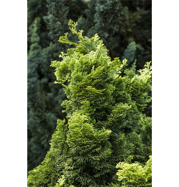 Gelbe Muschelzypresse 'Nana Aurea' ist ein rundlich wachsender Strauch. Sie erreicht gewöhnlich eine Höhe von 2 - 2,5 m und wird ca. 2 - 2,5 m breit.