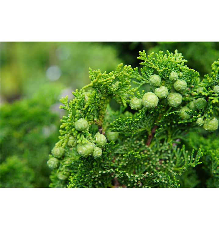 Die Kleine Muschelzypresse 'Nana Gracilis' ist immergrün. Ihre Nadeln sind dunkelgrün, glänzend, schuppenförmig.