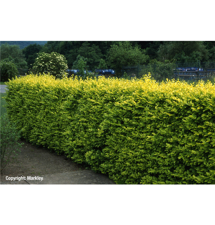 Goldliguster 'Aureum' ist ein aufrecht und straff wachsender Strauch. Er erreicht gewöhnlich eine Höhe von 2 - 3 m und wird ca. 1,5 - 2 m breit. In der Regel wächst er 15 - 25 cm pro Jahr.