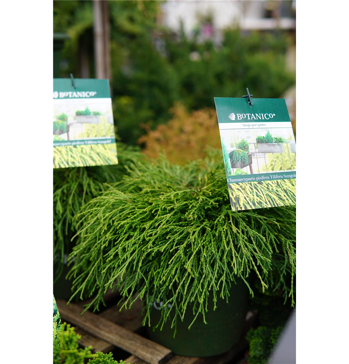 Ihre schuppenförmigen Blätter haben eine goldgelbe Färbung. Dieses Gehölz ist gut frostverträglich.Sie bevorzugt durchlässigen, humosen Boden in sonniger bis halbschattiger Lage.