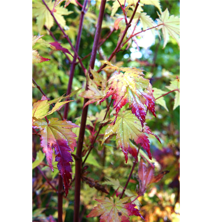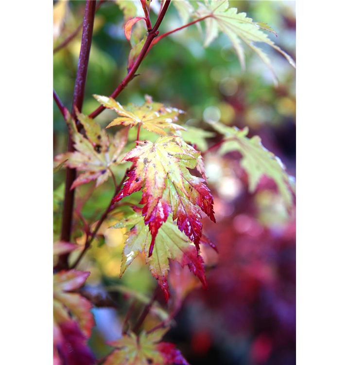 Fächerahorn 'Jordan'(s) ist ein aufrecht, überhängend wachsender Strauch. Er erreicht gewöhnlich eine Höhe von 2,5 - 3 m und wird ca. 2,5 - 3 m breit. Langsam wachsend. In der Regel wächst er 10 - 15 cm pro Jahr.