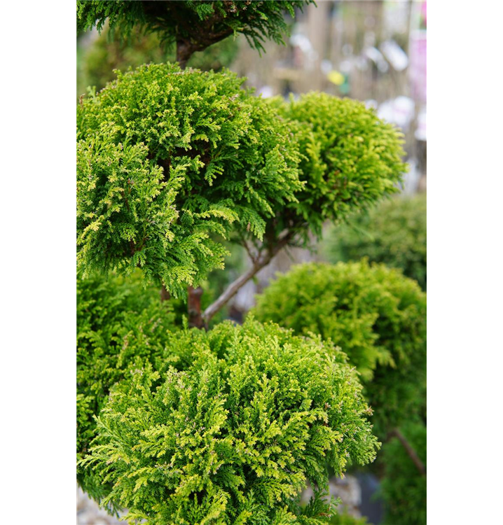Gelbe Mooszypresse 'Plumosa Aurea' ist ein kegelförmig und locker wachsender Großstrauch. Sie erreicht gewöhnlich eine Höhe von 3 - 6 m und wird ca. 1,75 - 3 m breit. Langsam wachsend.
