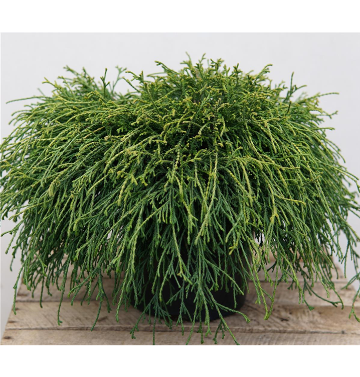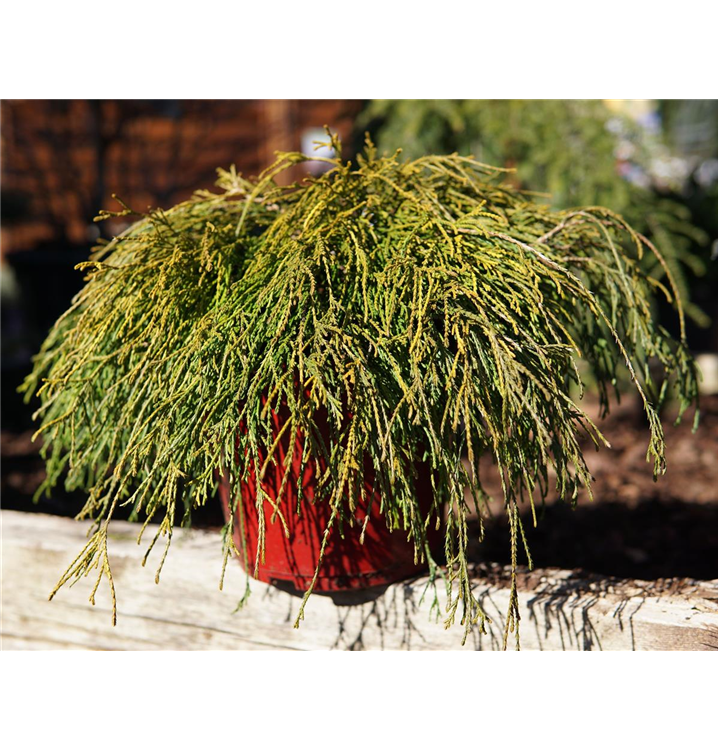 Sehr dekorativ. Die Gelbe Fadenzypresse 'Sungold' ist immergrün. Ihre Nadeln sind goldgelb, weich, schuppenförmig.