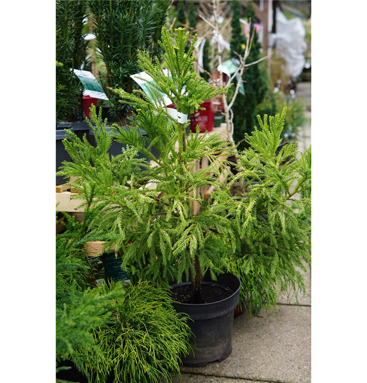 Cryptomeria japonica 'Cristata' gedeiht auf allen sauren, humosen und genügend feuchten Böden.