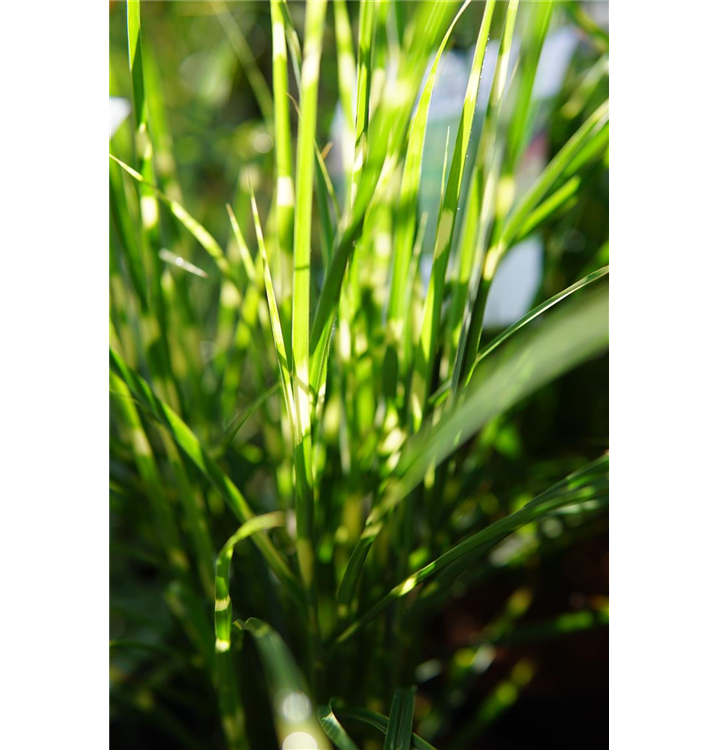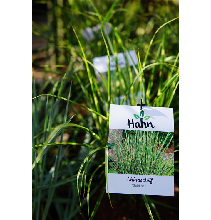 Das Garten-Chinaschilf 'Gold Bar'® (Miscanthus sinensis) ist mit seiner gelb-grünen Blattfärbung ein dekoratives Gestaltungselement im Garten, welches sich an einem sonnigen Standort mit einem möglichst durchlässigen, humosen, nährstoffreichen Boden am wohlsten fühlt. Die silbrigen Blütenwedel schmücken die aufrecht wachsende Pflanze ab Herbst. Bei günstigen Bedingungen erreicht dieses winterharte Gras eine Höhe von ca. 1,2 m und wird bis zu 1 m breit.