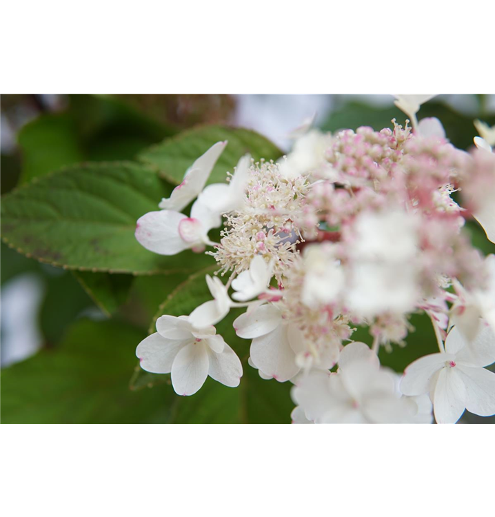 Die weißen, später rosafarbenen Blüten der Rispenhortensie 'Pinky Winky'® erscheinen in Rispen von Juli bis September. Diese sind angenehm duftend.