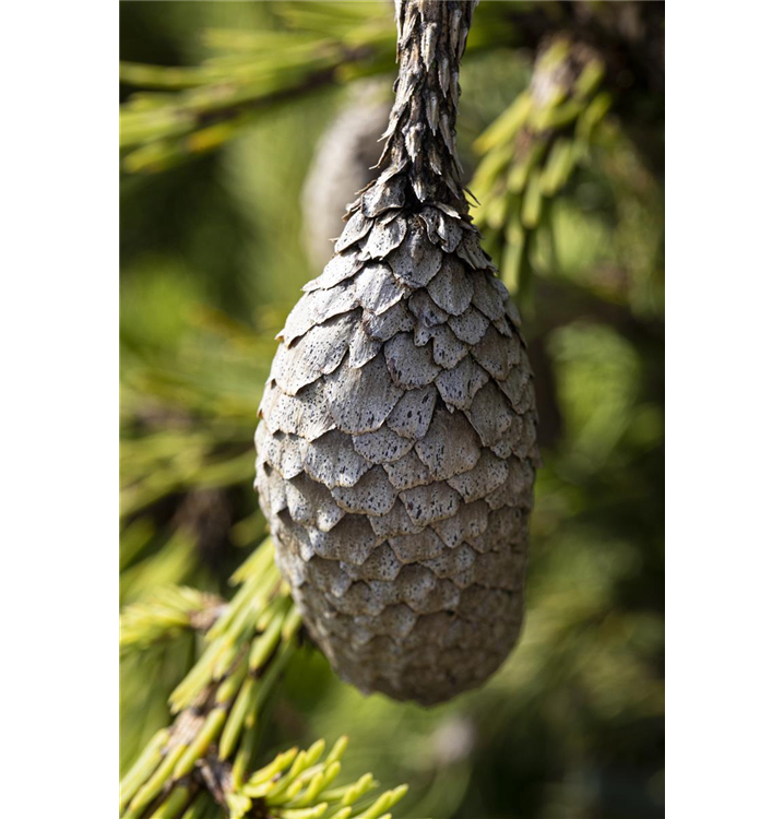 Die braunen Zapfen von Picea abies 'Acrocona' sind sehr groß und oval und erscheinen ab September. Die jungen Zapfen haben eine purpurrote Färbung.