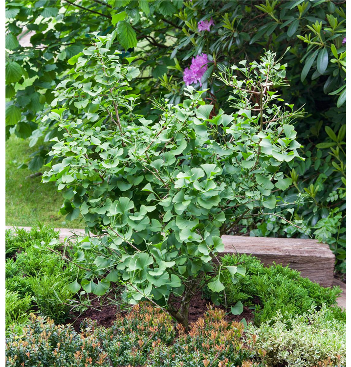 Der Fächerblattbaum (Ginkgo biloba) ist ein Baum, welcher kegelförmig wächst und gewöhnlich eine Höhe von ca. 20 m und eine Breite von ca. 15 m erreicht. Seine fächerförmigen, matten, ledrigen Blätter haben eine mittelgrüne Färbung. Sie verwandeln sich im Herbst in ein leuchtendes Goldgelb. Dieses Gehölz ist gut frostverträglich. Er bevorzugt durchlässigen, nährstoffreichen Boden in sonniger bis halbschattiger Lage.