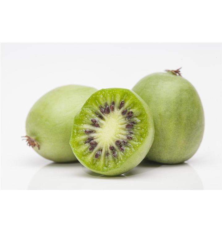Die grünen, kleinen Beeren haben einen süß-säuerlichen, exotischen Geschmack. Das Fruchtfleisch dieser ovalen Beeren ist weich. Reifezeit ab Mitte September.