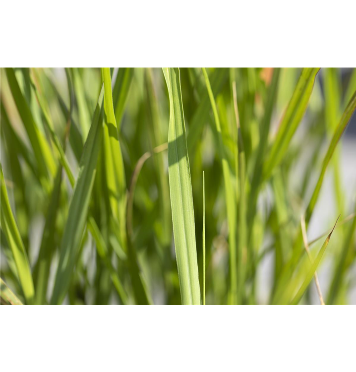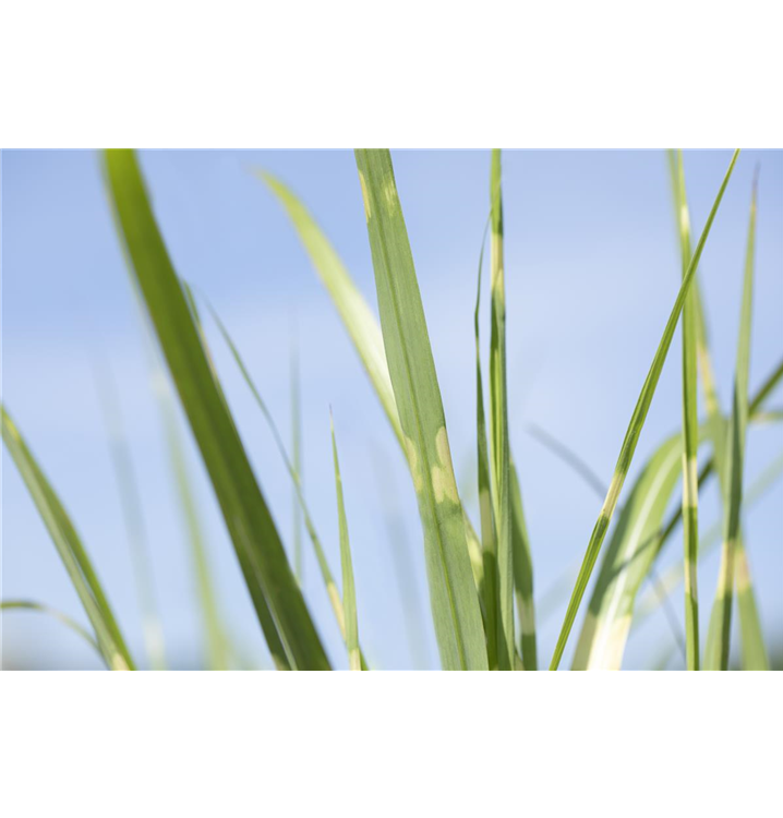 Hoher Blattschmuckwert. Die sommergrünen Blätter des Garten-Zebraschilfs 'Strictus' sind gelb-grün, lineal.