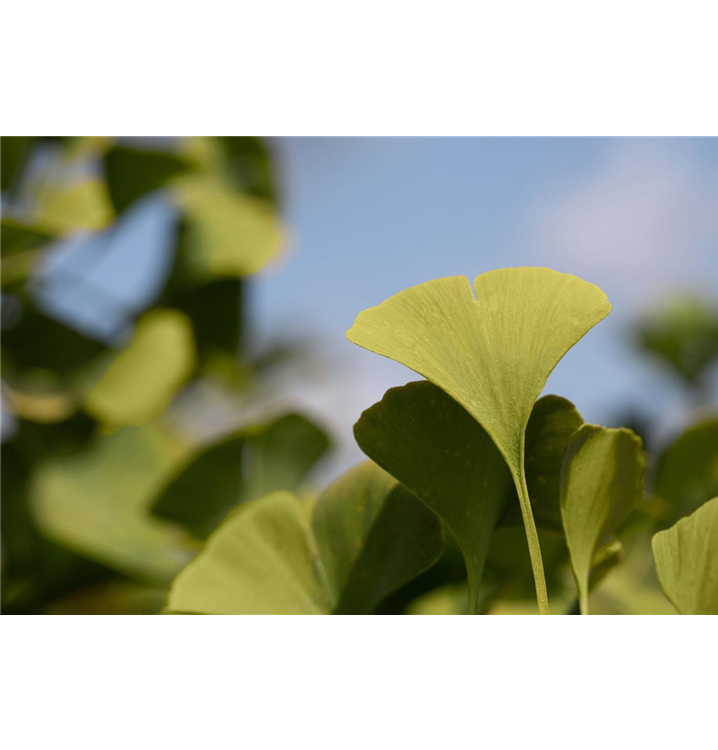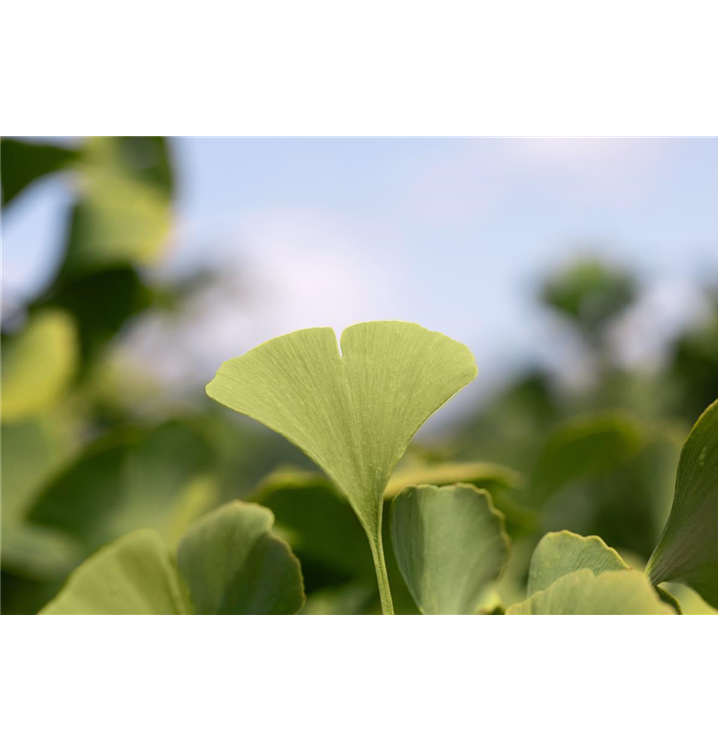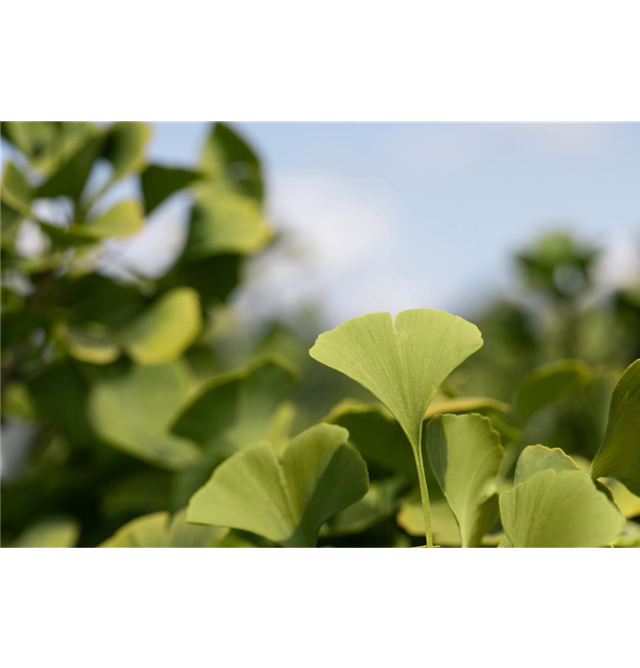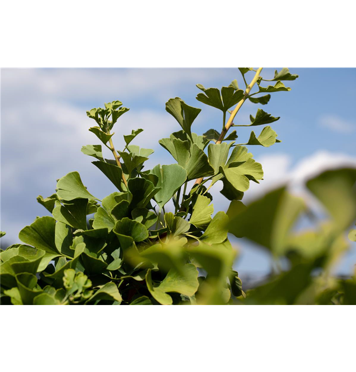Der Fächerblattbaum 'Globus' (Ginkgo biloba) ist ein Baum, welcher kegelförmig wächst und gewöhnlich eine Höhe von ca. 4 m und eine Breite von ca. 3 m erreicht. Seine fächerförmigen, matten, ledrigen Blätter haben eine mittelgrüne Färbung. Sie verwandeln sich im Herbst in ein leuchtendes Goldgelb. Dieses Gehölz ist gut frostverträglich. Er bevorzugt durchlässigen, nährstoffreichen Boden in sonniger bis halbschattiger Lage.