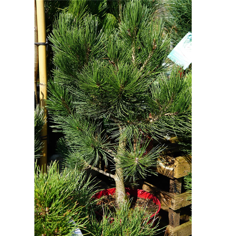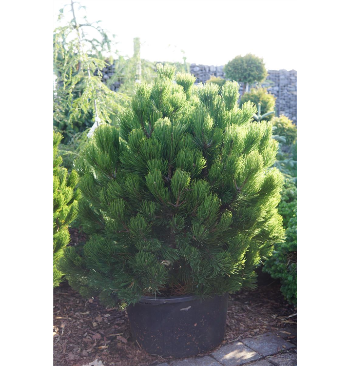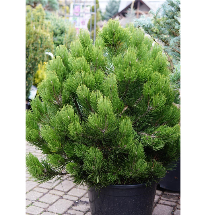 Die Bosnische Kiefer 'Compact Gem' (Pinus heldreichii) ist ein Strauch, welcher gedrungen, pyramidal wächst und gewöhnlich eine Höhe von ca. 3,5 m und eine Breite von ca. 3 m erreicht. Ihre nadelförmigen Blätter haben eine dunkelgrüne Färbung. Dekorative dunkelbraune Zapfen zieren Pinus heldreichii 'Compact Gem' ab September. Dieses Gehölz ist gut frostverträglich. Sie bevorzugt durchlässigen Boden in sonniger Lage.