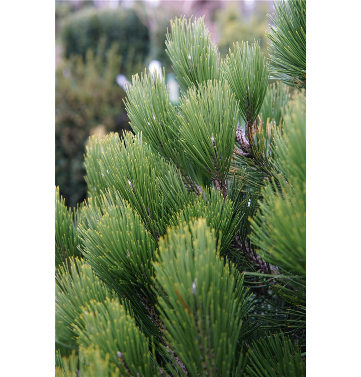 Bosnische Kiefer 'Compact Gem' ist ein gedrungen und pyramidal wachsender Strauch mit geschlossener Krone. Sie erreicht gewöhnlich eine Höhe von 1,5 - 3,5 m und wird ca. 1 - 3 m breit. Langsam wachsend. In der Regel wächst sie 10 - 15 cm pro Jahr.