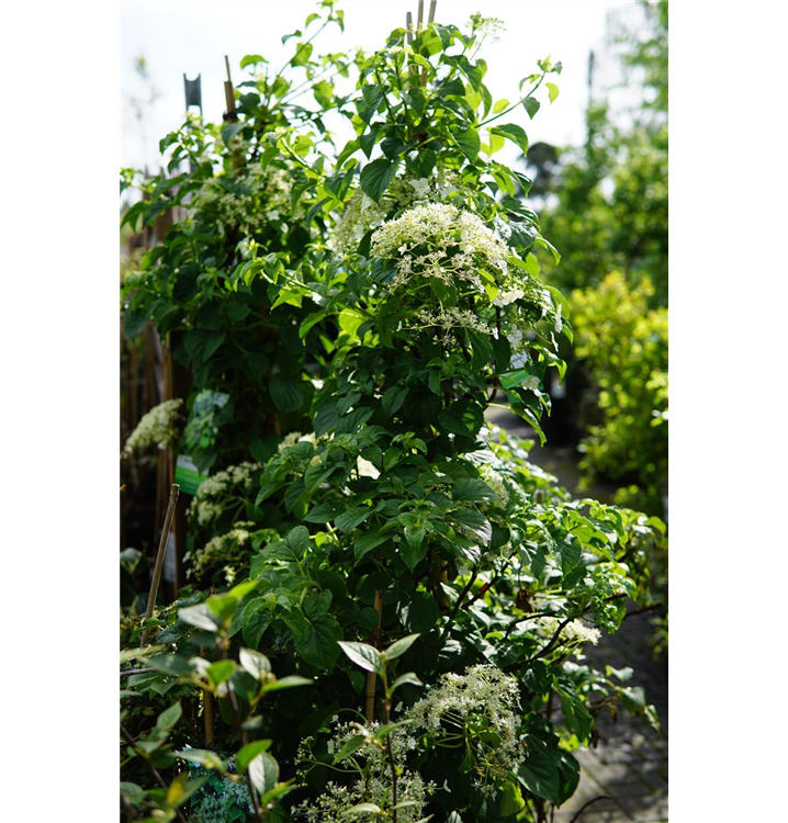 Kletterhortensie ist ein Klettergehölz, welches eine Höhe von 10 - 12 m und eine Breite von 3 - 4 m erreichen kann. In der Regel wächst sie 0,8 - 1 m pro Jahr.